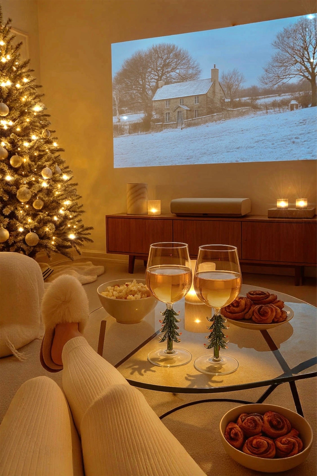 Each glass adorned with Christmas cheer,